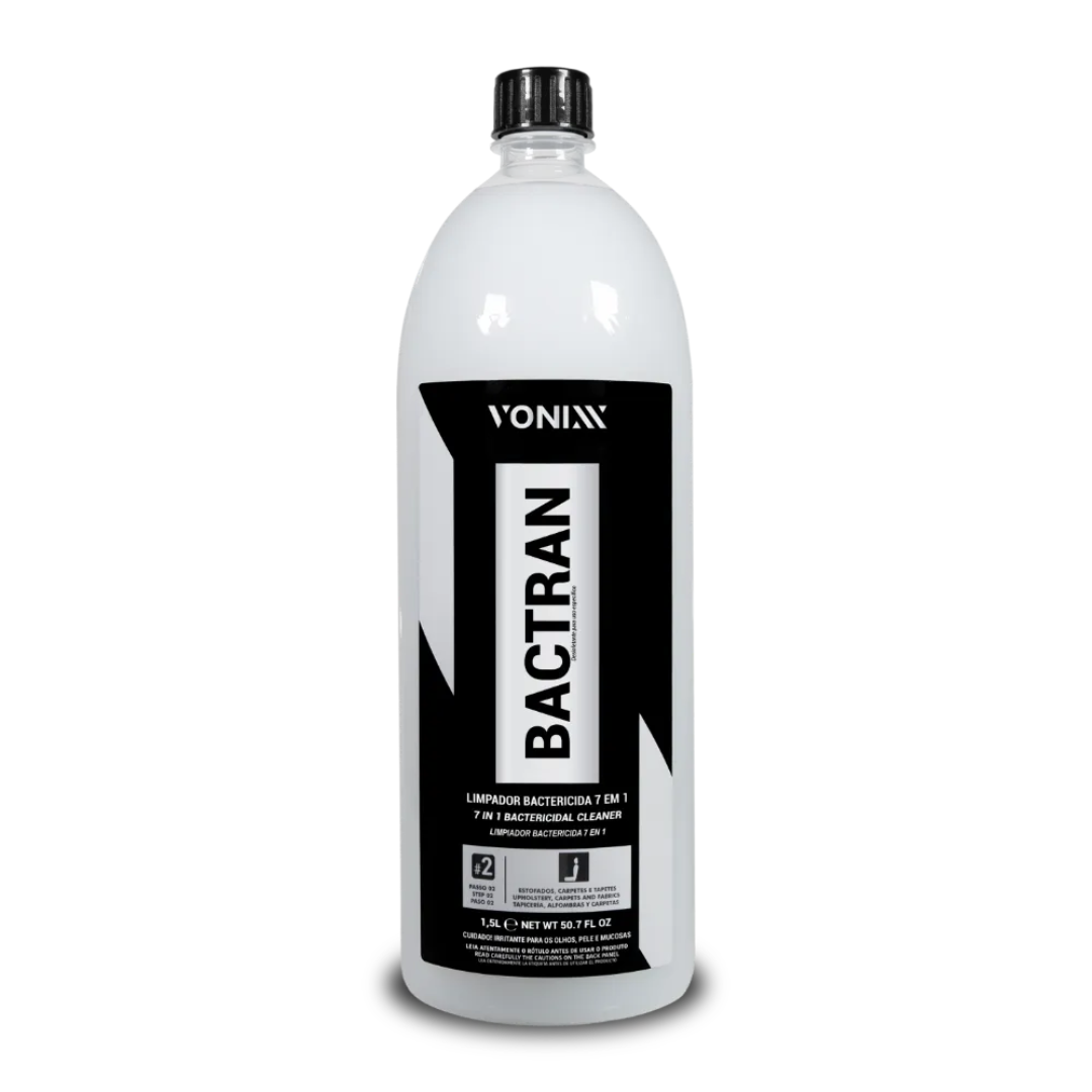Bactran é um limpador bactericida ultra concentrado de alta performance e baixa espumação, desenvolvido para limpeza profissional de estofados, carpetes e tapetes. Seu uso é indicado com extratoras. Sua fórmula contém tensoativos especiais que agem em sinergia com o peróxido de hidrogênio e remove facilmente os mais diversos tipo de sujeira, em especial manchas de sangue, suco, café e bolores, além de eliminar fungos e bactérias.