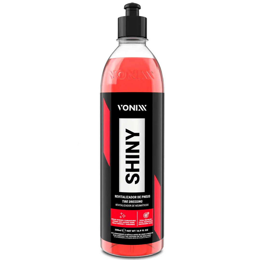 Shiny é um produto desenvolvido exclusivamente para uso em pneus que renova, protege e dá brilho intenso e duradouro aos pneus. O produto não sai ao entrar em contato com a água, podendo alcançar durabilidade de até 60 dias, rende de 15 a 20 aplicações em carros pequenos emantendo o aspecto no pneu de brilho molhado.