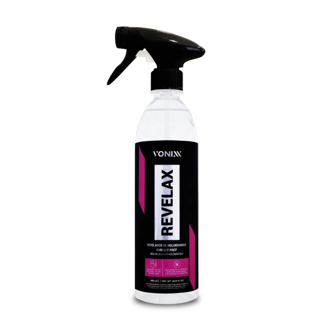 Revelax evidencia defeitos da pintura, como hologramas e swirls mascarados por ceras, selantes e polidores. É também recomendado para limpeza de vidros e descontaminação de plásticos, principalmente antes da aplicação de V-Plastic, removendo produtos como silicones e contaminações diversas. Seu uso deixa a peça pronta para inspeção antes de qualquer trabalho.