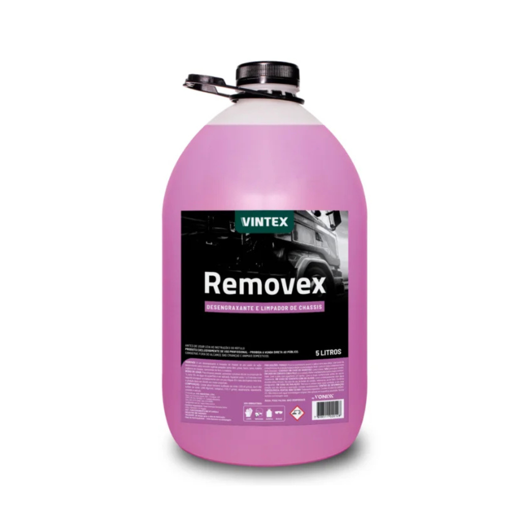 Removex é um desengraxante e limpador de chassi de alto poder de ação, desenvolvido para remover sujeiras pesadas como óleo, graxa, barro, lama, matéria orgânica de chassi, carrocerias de ferro e madeira.